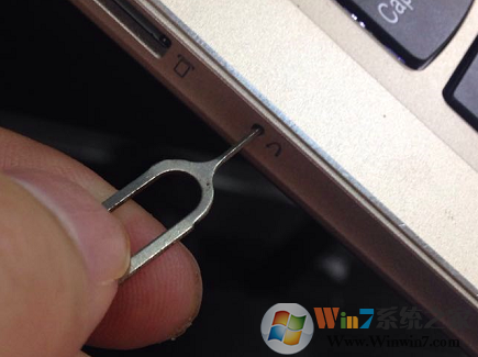 2、用取卡針捅一下機(jī)器左側(cè)的一鍵恢復(fù)孔;