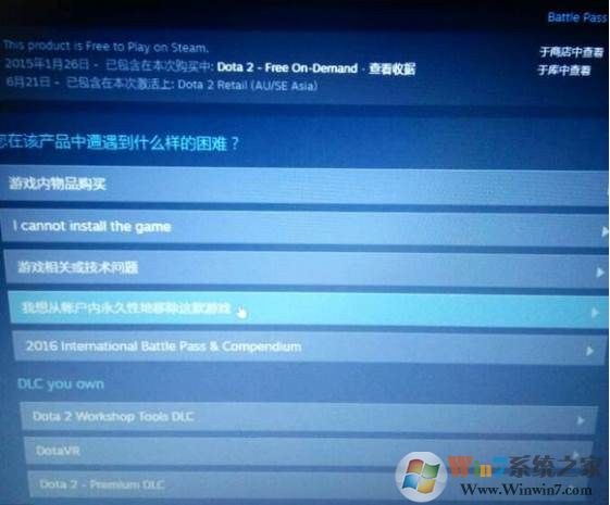 3、點擊“我想從帳戶內永久性地移除這款游戲”