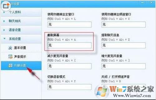 3、然后你會(huì)看“我的設(shè)置”窗口,這是需要點(diǎn)擊一下“熱鍵設(shè)置”(也就是快捷鍵設(shè)置)就會(huì)在右邊出現(xiàn)很多快捷鍵設(shè)置輸入框。如下圖