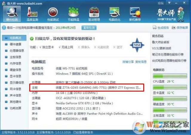 安裝好之后在硬盤檢測界面就可以看到主板型號等相關(guān)信息了