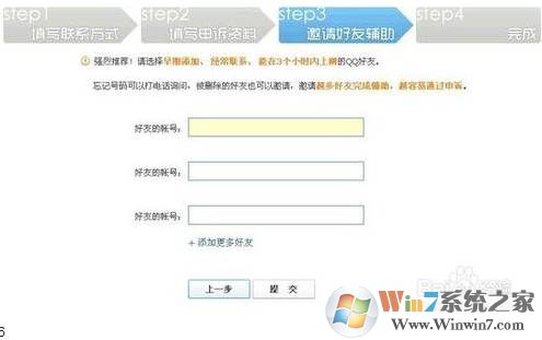5、最重要的就是好友輔助了,我們要輸入兩個以上的QQ小號,沒加過好友或者刪了都沒關系,按照頁面提示做,直到完成后找到填的小號QQ,用那兩個小號QQ去網(wǎng)站輔助申請,小號QQ郵箱里有輔助申請鏈接,進去填回執(zhí)編碼就行了?;貓?zhí)編號在你接收結(jié)果的郵箱里。