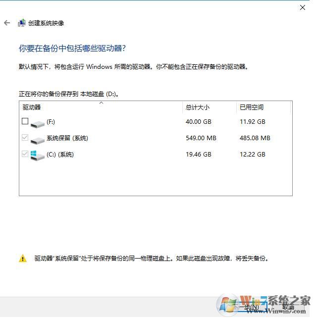 2、選擇要備份的分區(qū),默認(rèn)包含引導(dǎo)分區(qū)(默認(rèn)500MB)和系統(tǒng)分區(qū)(默認(rèn)C盤)