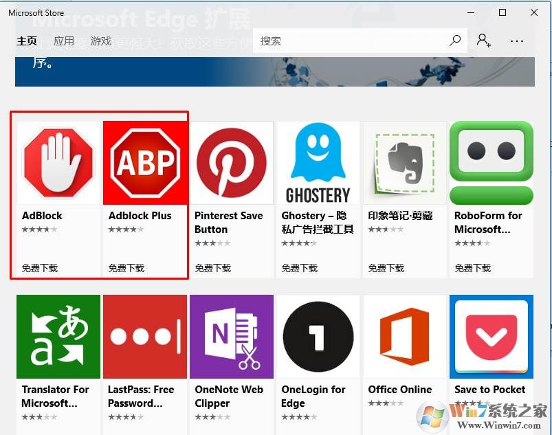3、打開應(yīng)用商店后,最開頭的就是兩個廣告攔截插件了(Adblock和Adblock Plus)。