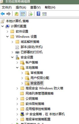 2、打開組策略后在左側(cè)展開:windows 設(shè)置 --安全設(shè)置--本地策略--安全選項(xiàng);
