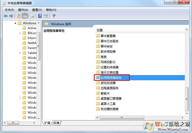 2、計算機配置下的--管理模板 ---windows組件---在右邊找到---應用程序兼容性