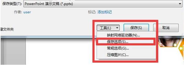 6、在“工具”選項(xiàng)下選擇“保存選項(xiàng)”。