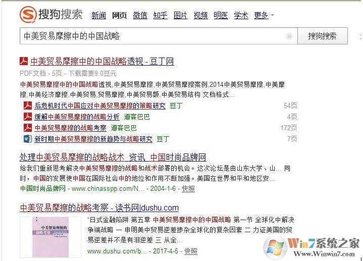 例如:查詢詞“中美貿(mào)易摩擦中的中國戰(zhàn)略 inurl:pishu”,inurl:之前的內(nèi)容是可以出現(xiàn)在網(wǎng)頁的任何位置,而之后的“pishu”則必須出現(xiàn)在網(wǎng)頁url中。