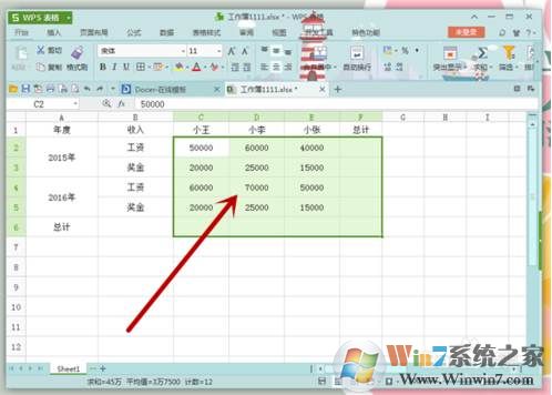 “選中”要求和的數(shù)據(jù),連同顯示求和結果的行和列都選中。大家可以看一下圖就知道了,這一步還是很簡單易懂的。