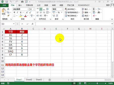 43、利用高級(jí)篩選提取含某個(gè)字符的項(xiàng)目