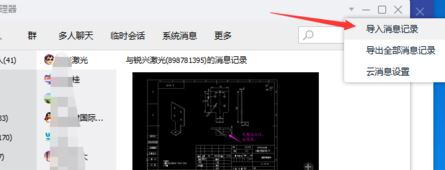 1、在登錄后跟導(dǎo)出操作一樣,在倒三角圖標(biāo)中選擇導(dǎo)入消息記錄,如圖所示: