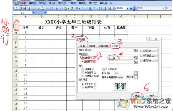 單擊菜單欄中的“文件”,在下拉菜單中選擇“頁面設置”,單擊“工作表”選項卡,在“頂端標題行”中寫入標題行的范圍,比如下圖中是第1和第2行為標題行(即表頭),則寫入 $1:$2 ,確定。
