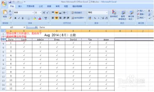 1、下面我們就以凍結(jié)第三行的窗口為例。