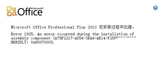 win10無法安裝office:安裝過程中出錯(cuò) error 1935 該怎么辦?最近使用win10系統(tǒng)的用戶反應(yīng)在win10系統(tǒng)中無法安裝office的現(xiàn)象,安裝過程中彈出了如下錯(cuò)誤提示:Microsoft office 在安祖航過程中出錯(cuò)。Error 1935 XXXX HRESULT:0x80070003。的錯(cuò)誤提示,該怎么辦呢?