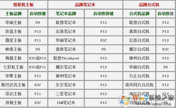 4、不同主板,電腦品牌的開(kāi)機(jī)鍵如下: