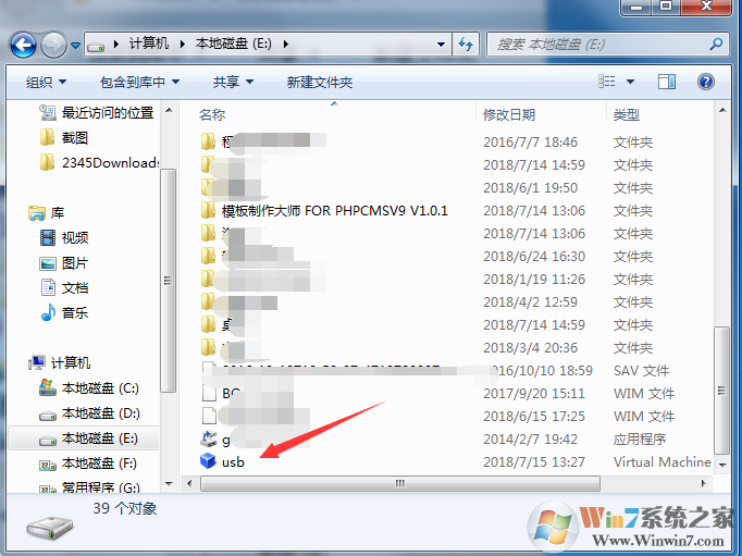 6、這時(shí)打開(kāi)E盤(pán),你會(huì)發(fā)現(xiàn)多了一個(gè)USB.vmdk文件;