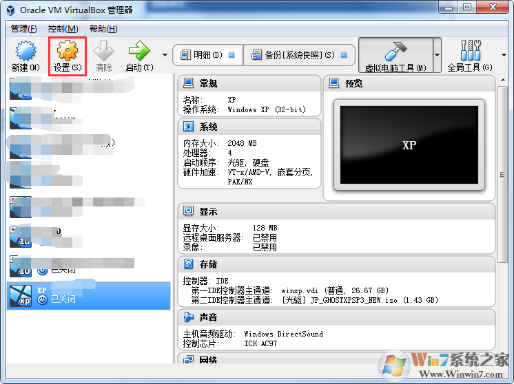 7、這時(shí)打開(kāi)vbox虛擬機(jī),然后點(diǎn)設(shè)置;