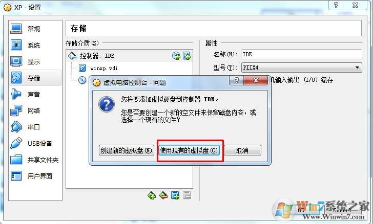 9、然后選擇使用現(xiàn)有的虛擬盤(pán);