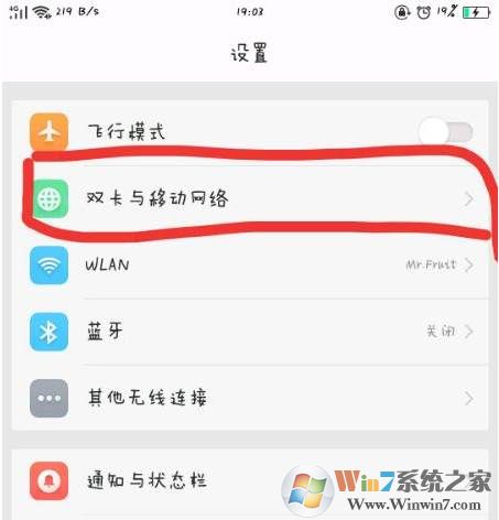 1.打開手機(jī)設(shè)置,點(diǎn)擊雙卡與移動(dòng)網(wǎng)絡(luò)