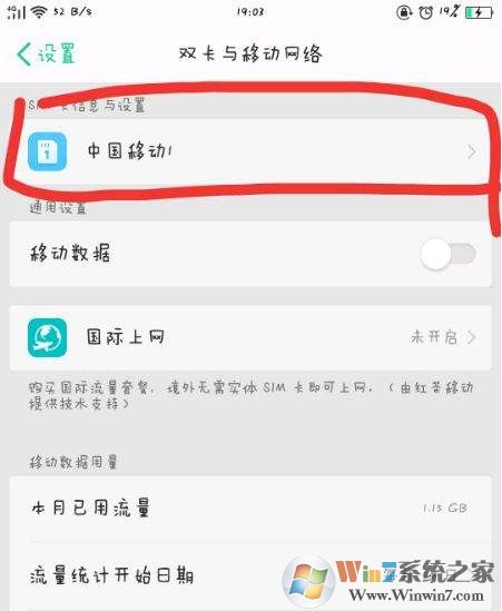2.進(jìn)入雙卡與移動(dòng)網(wǎng)絡(luò)后,點(diǎn)擊SIM卡1