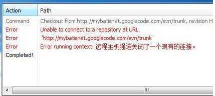 最近的用戶反饋在eclipse內(nèi)使用SVN時出現(xiàn)了一個錯誤提示,提示內(nèi)容為:Could not read status line: 遠(yuǎn)程主機強迫關(guān)閉了一個現(xiàn)有的連接。