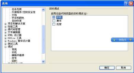 打開visual studio 2008,依次打開菜單欄的打開菜單欄的工具-選項-調(diào)試-實時,然后看到三個選項,分別是本機(jī),腳本,托管,全部取消。