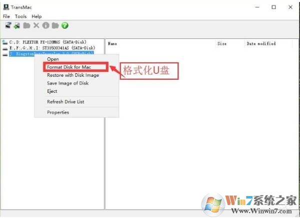 2、插入準(zhǔn)備好的U盤(pán),U盤(pán)數(shù)據(jù)要轉(zhuǎn)移,打開(kāi)TransMac,右鍵要制作啟動(dòng)盤(pán)的U盤(pán)名稱(chēng),選擇“Format Disk for Mac”,將U盤(pán)格式化成Mac下的格式;