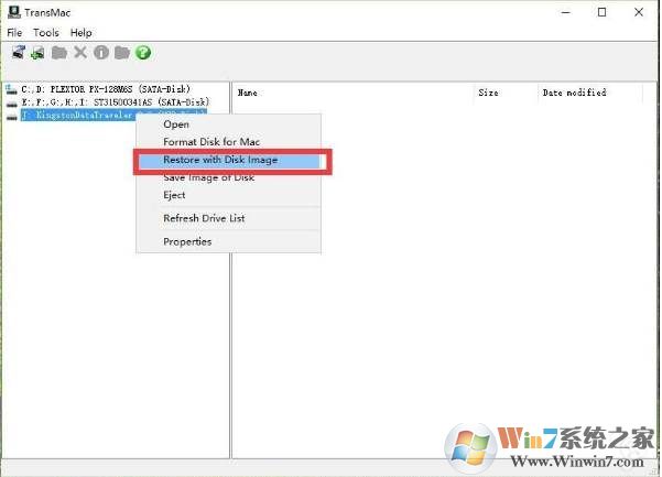 6、格式化之后,右鍵U盤(pán)選擇“Restore with Disk Image”,選擇mac os x鏡像;