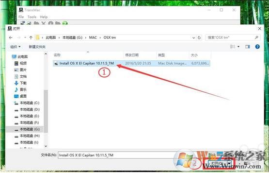 7、選擇已經(jīng)準(zhǔn)備好的OS X.dmg鏡像,點(diǎn)擊打開(kāi);