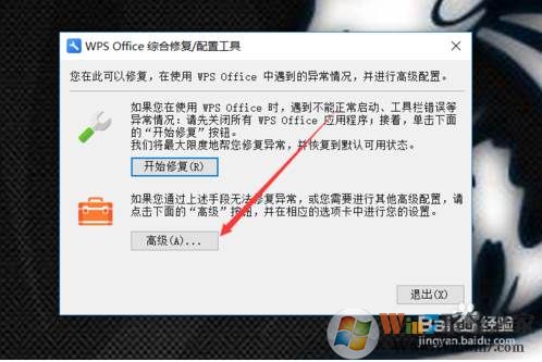 2、開WPS Office配置工具后,直接點(diǎn)擊下面的【高級(jí)】按鈕,如下圖所示