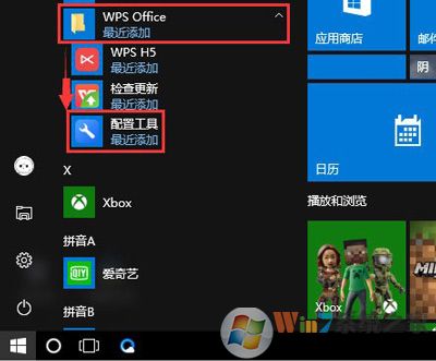 1、點(diǎn)擊開(kāi)始菜單,找到WPS Office,選中WPS Office中的配置工具,如圖: