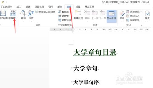 選擇【審閱】然后就可以點(diǎn)擊字?jǐn)?shù)統(tǒng)計(jì)來查看具體字?jǐn)?shù)了。
