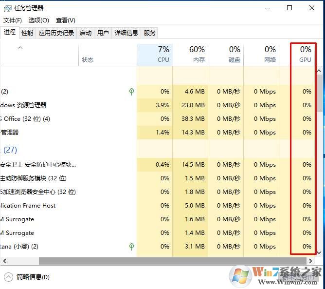 3、這時(shí)我們再看就可以看到GPU,也就是顯卡使用率的一欄了(往右拉一點(diǎn));
