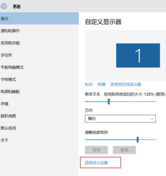 2、在顯示設(shè)置界面中,點擊下方的“高級顯示設(shè)置”,如圖:
