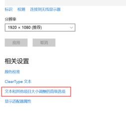 3、在高級顯示設(shè)置界中,把分辨率設(shè)置成最佳,拖動到最后面,選擇“文本和其他項目大小調(diào)整的高級選項”;