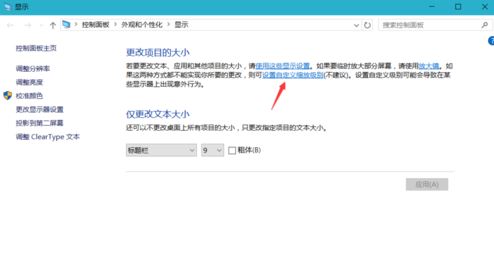 4、接著在“更改大小項目”中,點擊藍(lán)色字體的“設(shè)置自定義級別縮放”,m.cncxm.com如圖: