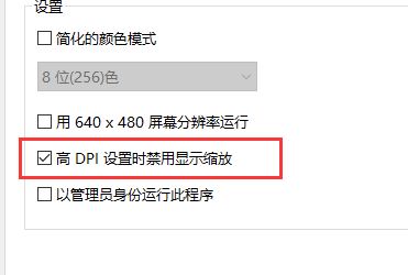除了以上方法我們還可以右鍵點擊程序,選擇屬性,切換到兼容性,勾選高DPI設(shè)置時禁用顯示縮放,還原軟件的大小,如圖: