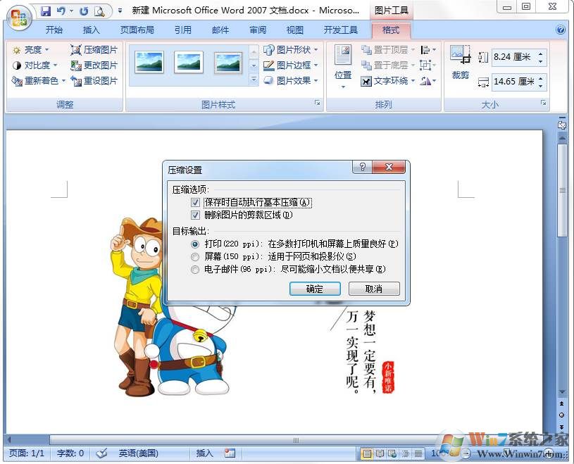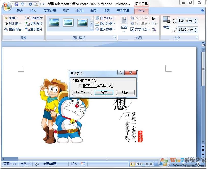 5、如果僅對該圖片進行壓縮那么勾選 “僅應用于所選圖片”,如果想要壓縮全部Word文檔中的圖片,那么不勾選。
