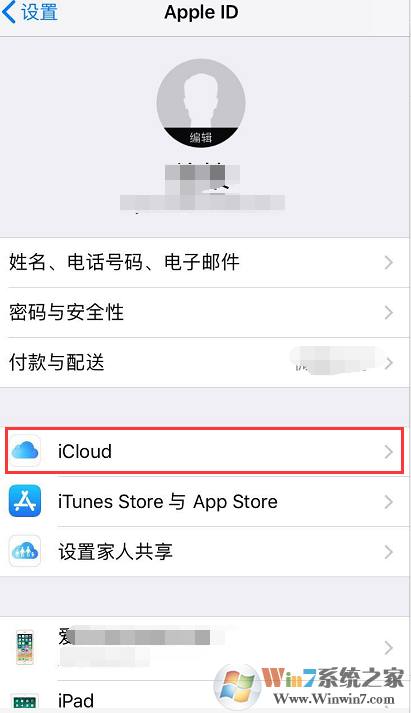 3、進(jìn)入Apple ID之后,我們再點(diǎn)擊iCloud 進(jìn)入;Win7系統(tǒng)之家 m.cncxm.com