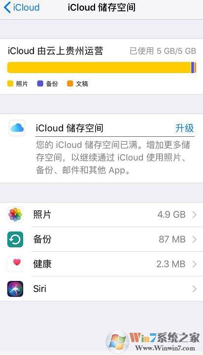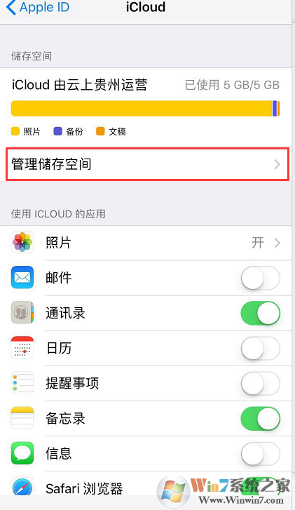 5、下面列出了你的各種數(shù)據(jù)使用iCloud的儲(chǔ)存情況,你可以根據(jù)你的需要點(diǎn)擊進(jìn)入進(jìn)行刪除清理;