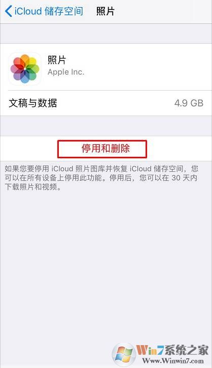 6、比如說你不想照片備份(其實(shí)主要也是照片)那么點(diǎn)擊進(jìn)入,然后點(diǎn)擊刪除并停用即可