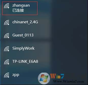 ,在搜索無線網(wǎng)絡(luò)列表里面顯示無線信號(hào)已連接,如下圖: