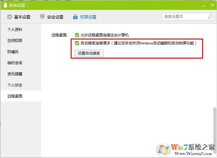 在遠程桌面設置中,勾選被控方QQ的自動接受。