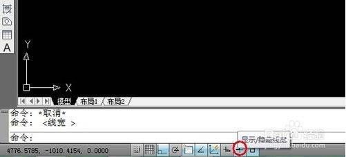 2、線寬不顯示怎么辦?如果線寬不顯示的話,其實(shí),你已經(jīng)設(shè)置成功了我們只要點(diǎn)擊cad左下角“顯示/隱藏線寬”的圖標(biāo)就好了。如下圖。