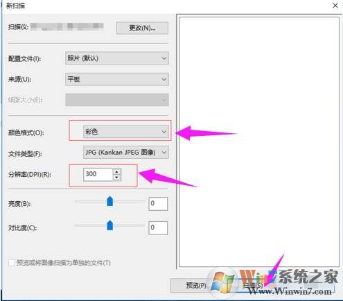 5、這時出現(xiàn)了掃描窗口,我們設(shè)置一下圖片質(zhì)量、分辨率等參數(shù);