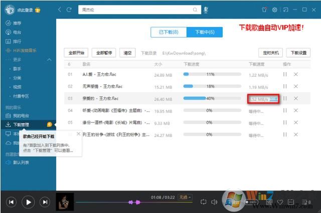 3、選擇需要下載的歌曲,置一下保存位置,然后再點擊下載,就可以開始下載音樂了,下載完成到保存目錄查看即可。
