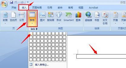 1、打開word,首先切換到“插入”標(biāo)簽,點(diǎn)擊“表格”,插入一個(gè)“一行一列”的表格,如下截圖所示: