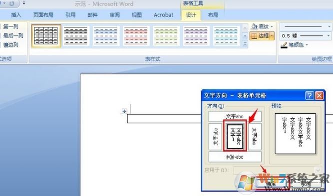 3、接著我們在文字方向框中選擇中間的豎排方向,點(diǎn)確定,如圖: