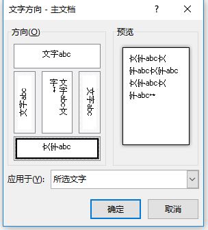 2、然后在文字方向選擇最下面的翻起來的文字,點(diǎn)擊確定;