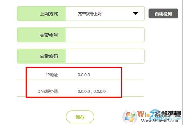 如果“IP地址”、“DNS服務(wù)器”都是0,如下圖所示,說明這臺(tái)新版迅捷路由器上網(wǎng)設(shè)置不成功,請仔細(xì)檢查相關(guān)設(shè)置步驟。