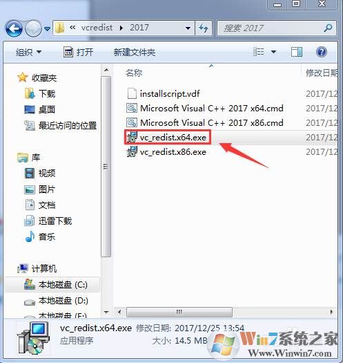又去絕地求生安裝目錄,打開(kāi)C:\Program Files\steam\steamapps\common\PUBG\_CommonRedist\vcredist\2017中找到vc_redist.x64,vc_redist.x86,(如果是32位系統(tǒng)就選擇32位的安裝,如圖是64位系統(tǒng)建議把x64和X86都安裝一下)
